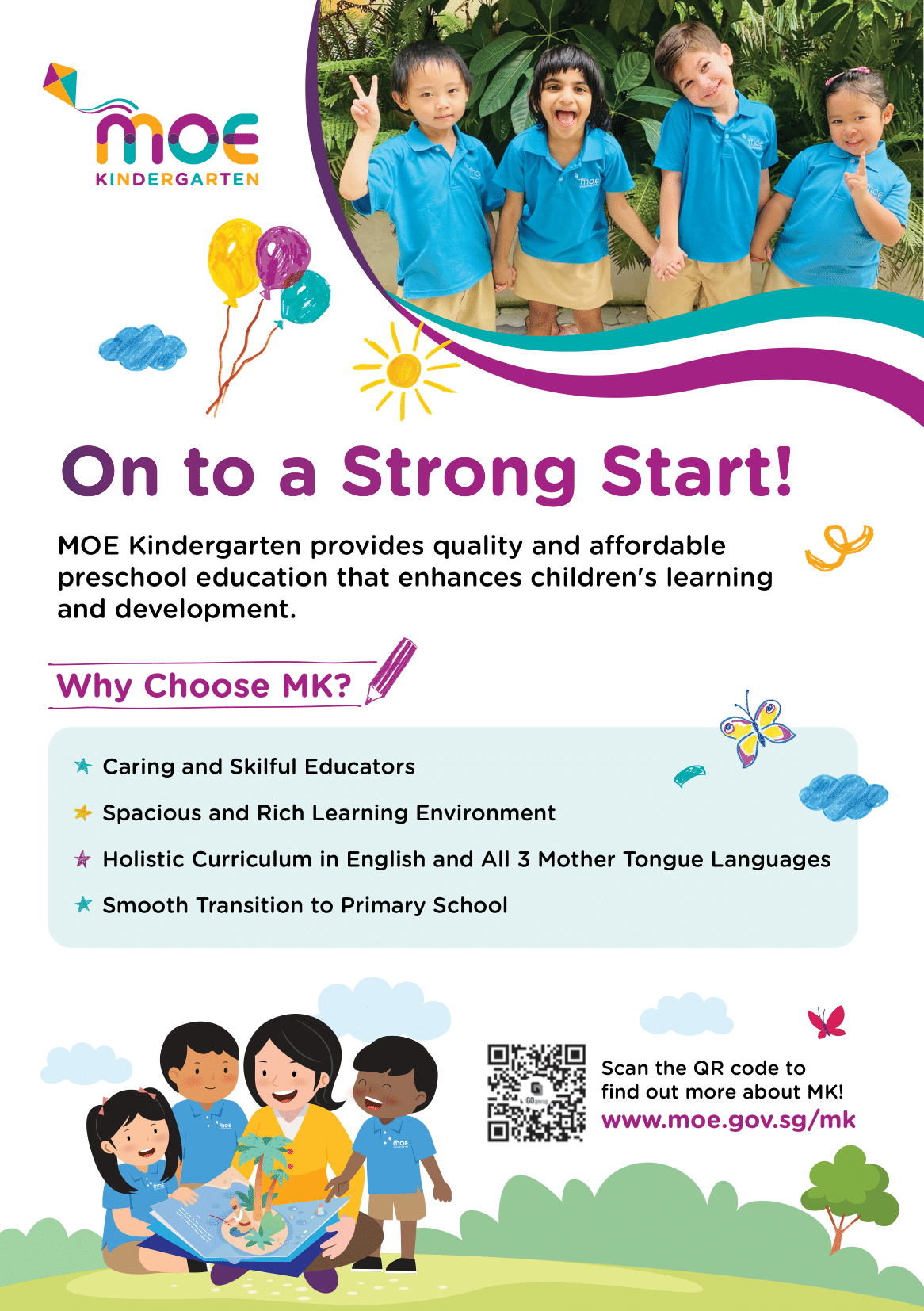 MOE Kindergarten @ Ang Mo Kio is having our MK Open House on Saturday, 8 February 2025, from 8.30am to 12.30pm. Last walk-in is at 12.15pm. Keen to find out what MOE Kindergarten has to offer?