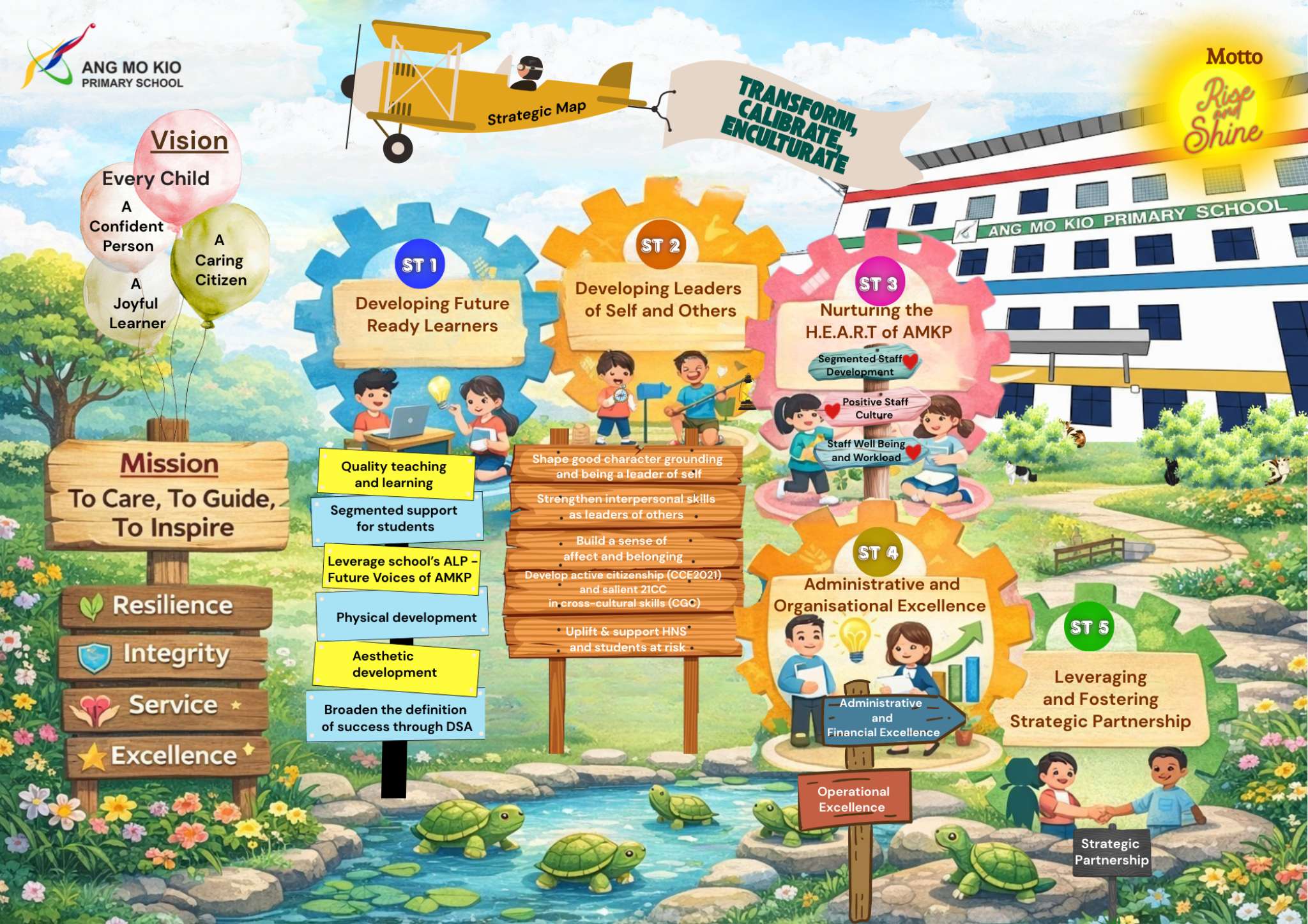 These priorities are carried out through our five Strategic Thrusts, which guide our efforts in teaching and learning, student development, staff growth, partnerships, and school operations. Together, they help us create a supportive environment where every child can truly Rise and Shine.
